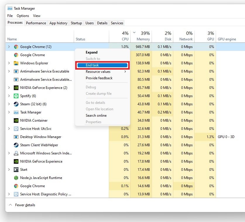 Falls das Problem weiterhin besteht, deaktivieren Sie unbedingt alle Anwendungs-Overlays, die beim Spielen des Spiels angezeigt werden könnten. Öffne deineTask-Managerindem Sie in Ihrer Startmenüsuche danach suchen.