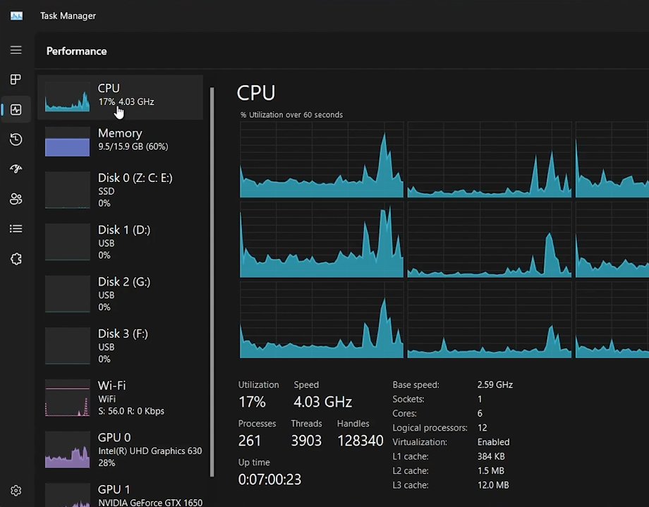 Überwachen Sie die Leistung:Gehen Sie zur Registerkarte „Leistung“, um die CPU- und GPU-Auslastung zu überprüfen.