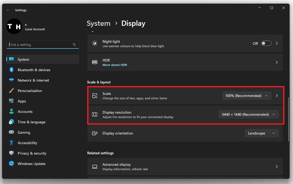 Stellen Sie sicher, dassSkalierungauf 100 % eingestellt ist und Sie eine normale native Auflösung verwenden.