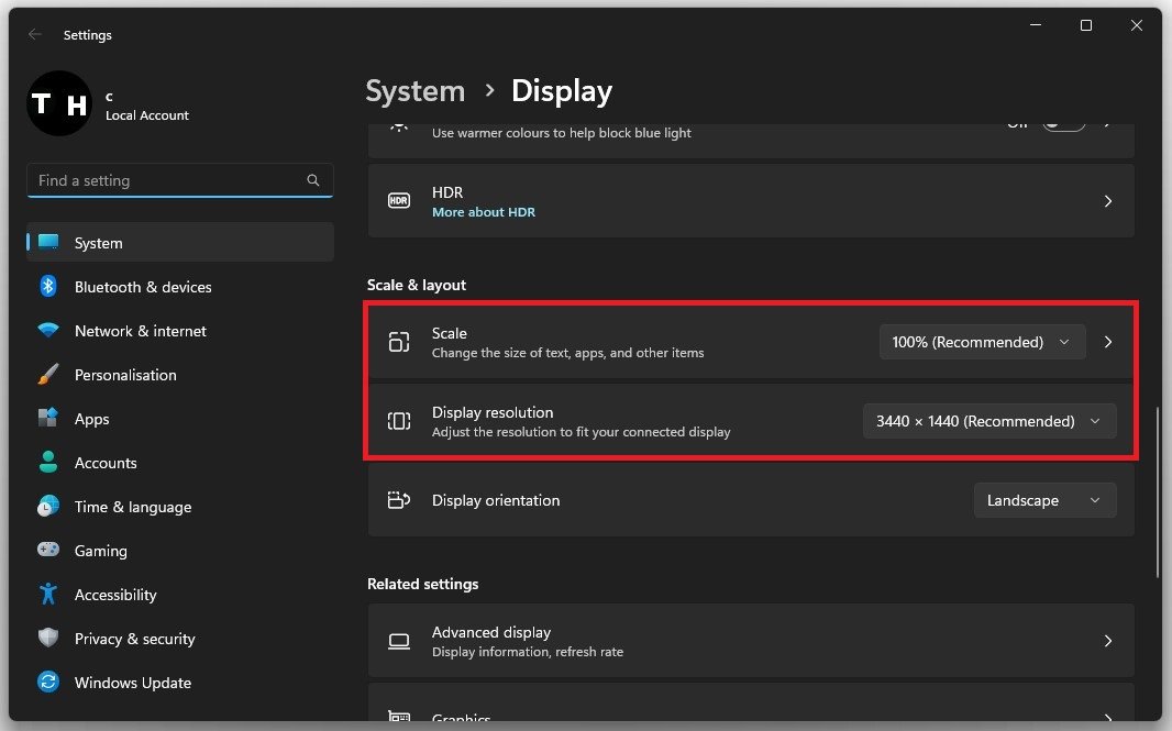 Stellen Sie sicher, dass die Skalierung auf eingestellt ist100%und Sie verwenden eine standardmäßige native Auflösung. Stellen Sie in Ihren Grafikeinstellungen im Spiel den Fenstermodus auf einVollbild.