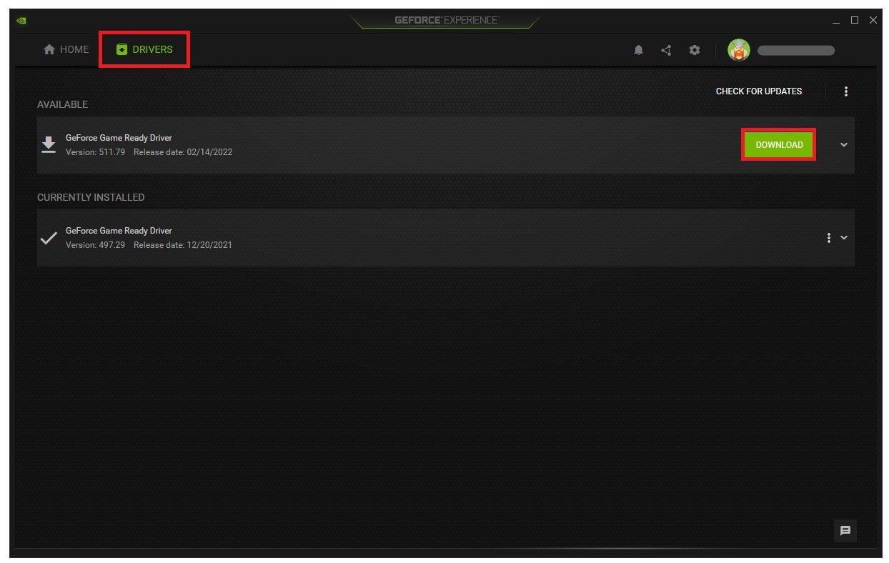 Sie sollten außerdem sicherstellen, dass Ihr Grafikkartentreiber aktuell ist. Ich schlage vor, die zu verwendenGeForce-ErlebnisAnwendung für eine NVIDIA-GPU, Sie können aber auch die verwendenAMD Radeon-Software. ImTreiberRegisterkarte, klicken SieHerunterladen,und die Anwendung lädt automatisch den neuesten Treiber herunter und installiert ihn. Wiederholen Sie diesen Schritt einige Male im Jahr, um sicherzustellen, dass Sie Ihre Hardware optimal nutzen.