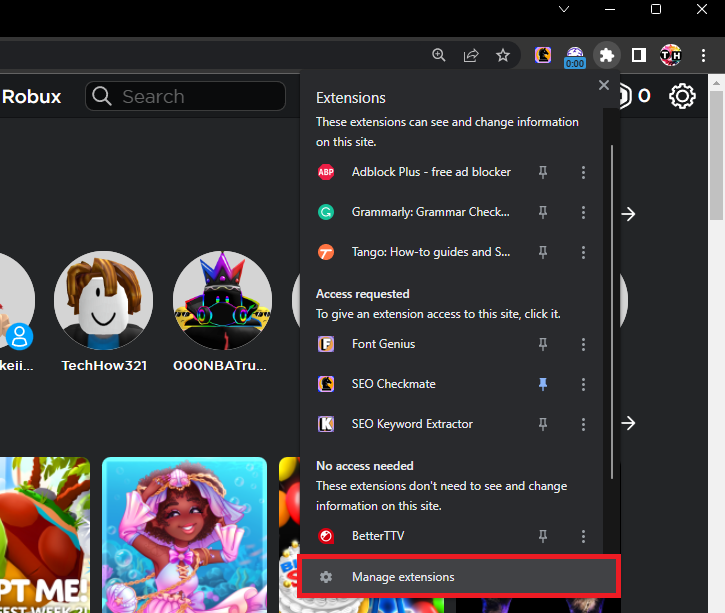 Browsererweiterungen können gelegentlich die ordnungsgemäße Funktion von Roblox beeinträchtigen. So verwalten Sie Erweiterungen in Google Chrome: