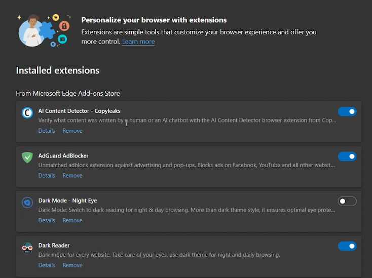 Gehen Sie Ihre Erweiterungen durch und deaktivieren Sie sie nacheinander, um festzustellen, ob eine davon den Roblox-Fehlercode E01 verursacht.