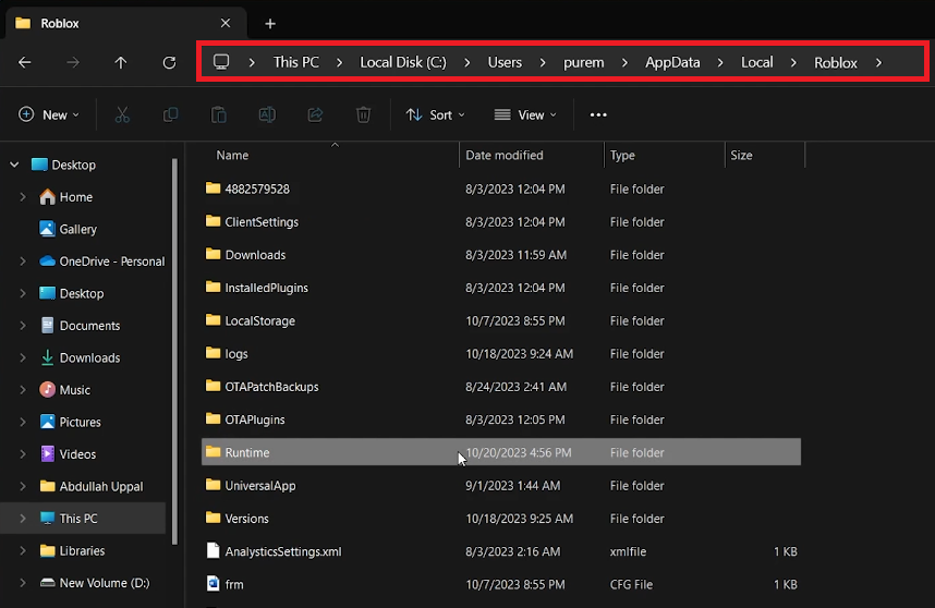 Suchen und öffnen Sie im daraufhin angezeigten Datei-Explorer-Fenster den Ordner „Roblox“.