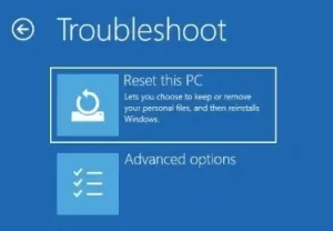 2. Wählen Sie im Menü „Fehlerbehebung“ die Option „Diesen PC zurücksetzen“.