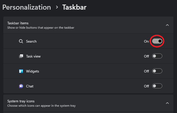 Gelegentlich können beschädigte Windows-Dateien oder -Updates zu Problemen mit der Suchfunktion des Startmenüs führen. Um dieses Problem zu beheben, navigieren Sie zurück zu Ihren Windows-Einstellungen. Scrollen Sie unter „Personalisierung“ nach unten, um auf Ihre Taskleisteneinstellungen zuzugreifen.
