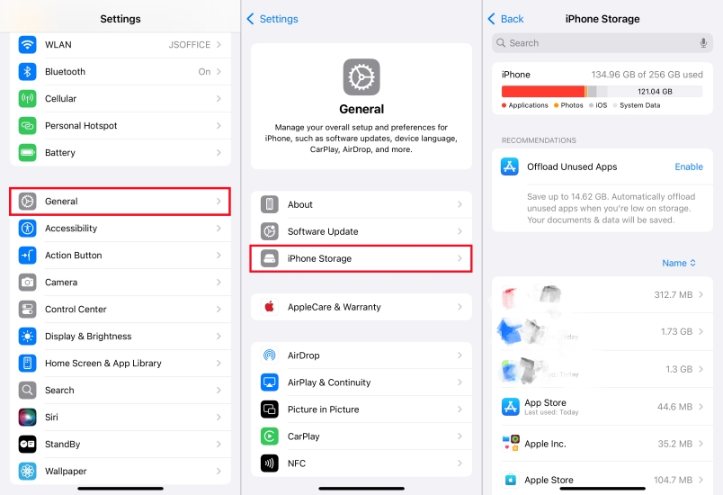 Schritt 1.Gehe zuEinstellungen > Allgemein > iPhone-Speicher.