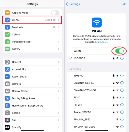 Schritt 2.AusschaltenWLANund wieder verbinden.