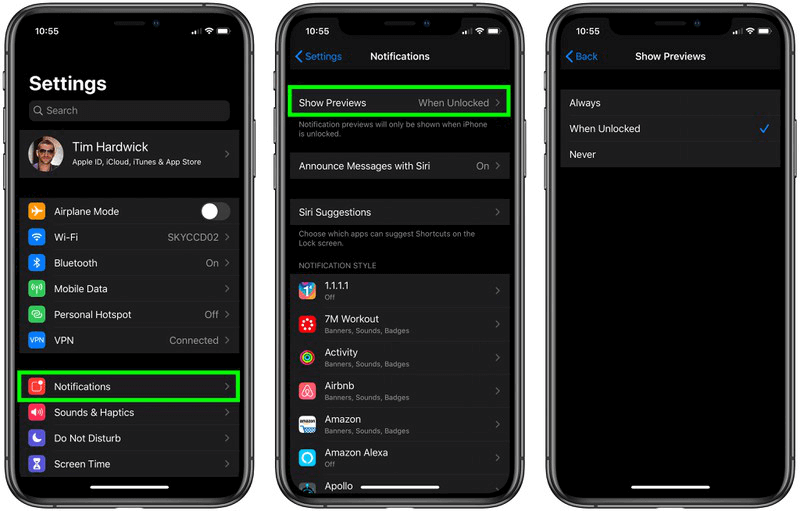Wie bringe ich mein iPhone dazu, meine Nachrichten nicht anzuzeigen?