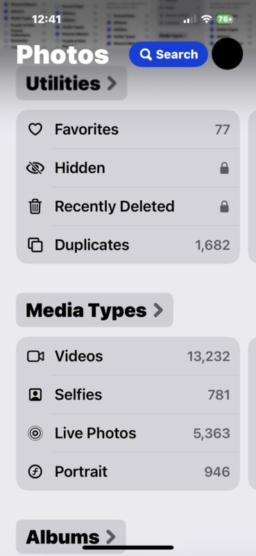 Ein weiterer hilfreicher Tipp für die Verwendung der neuen Fotos-App ist, dass Sie auf „Medientyp“ oder „Dienstprogramme“ tippen müssen, um bestimmte Alben oder Ansichten anzuzeigen, auf die Sie zuvor möglicherweise schneller Zugriff hatten, beispielsweise um Screenshots im neuen Design anzuzeigen.