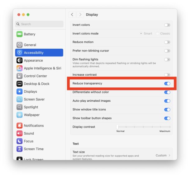 Gehen Sie zu > Systemeinstellungen > Barrierefreiheit > Anzeige und stellen Sie sicher, dass „Transparenz reduzieren“ aktiviert ist.