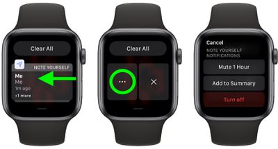 - Heben Sie Ihr Handgelenk, um Ihre Apple Watch zu aktivieren, und wischen Sie vom oberen Bildschirmrand nach unten, um das Benachrichtigungscenter anzuzeigen.
