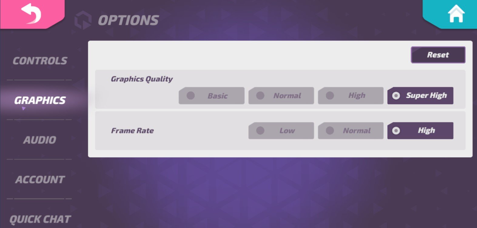 ImGrafikAbschnitt reduzieren Sie die Grafikqualität vonSuper hochoderHochZuNormalwenn es zu Verzögerungen oder anderen Leistungsproblemen kommt. Unten verlassen Sie dieBildrateOption auf den Standardwert zurücksetzen, der in meinem Fall auf gesetzt istHoch. Dadurch wird sichergestellt, dass Ihr PC oder Mac Ihr Spiel unter Beibehaltung der Bildrate ausführen kann.