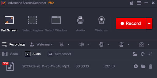 Beim Advanced Screen Recorder ist das Gegenteil der Fall. Es kann dedizierte Audiodateien aufzeichnen, die auf Ihrem Bildschirm abgespielt werden, was den gesamten Vorgang für Sie vereinfacht.