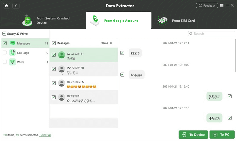 Schritt 4. Sehen Sie sich alle in Google gespeicherten Nachrichten an und stellen Sie sie auf Ihrem Telefon oder Computer wieder her.