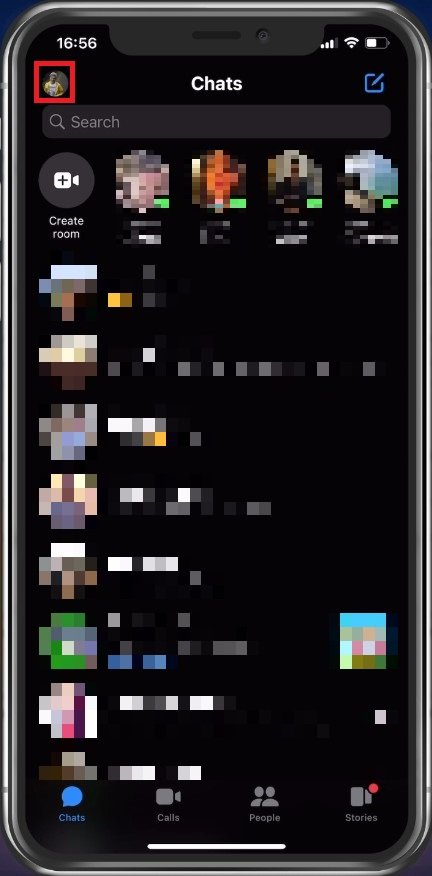 Öffnen Sie die Facebook Messenger-Anwendung. Wählen Sie hier oben links auf Ihrem Bildschirm Ihr Profilbild aus.