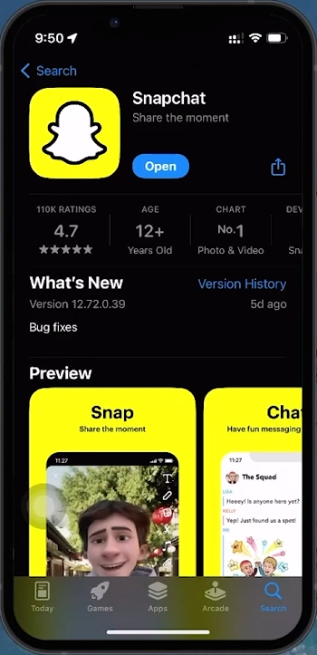 Suchen Sie Snapchat im App Store:Öffnen Sie den App Store und suchen Sie nach Snapchat.