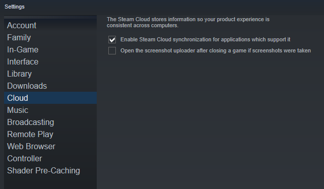 Steam-Einstellungen > Cloud