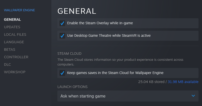 Steam-Bibliothek > App-Eigenschaften > Allgemein > Steam Cloud