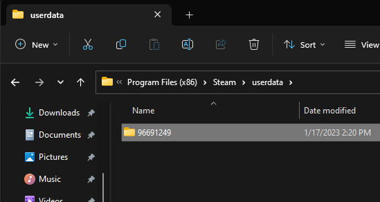 Navigieren Sie in Ihrem Datei-Explorer zurück zum Steam-Hauptverzeichnis und darunterBenutzerdatenfinden Sie nummerierte Ordner mit den Steam-Cloud-Speichern für Ihre Spiele und Anwendungen.