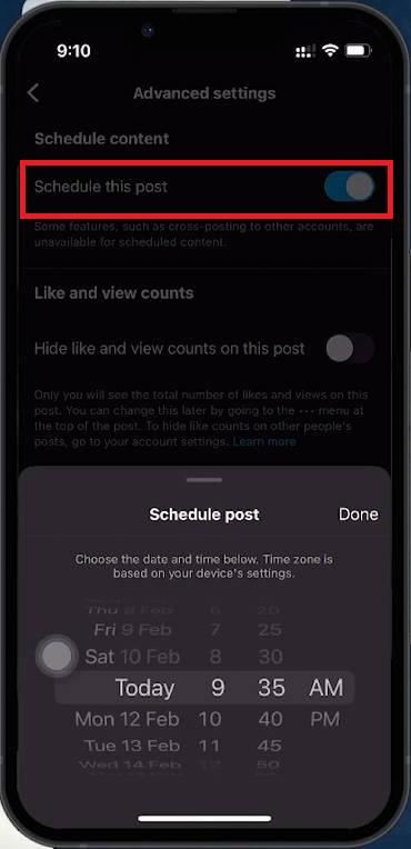 Wie plane ich einen Beitrag auf Instagram?Nachdem Sie Ihren Beitrag erstellt haben, tippen Sie vor der Veröffentlichung auf „Erweiterte Einstellungen“ und aktivieren Sie den Schalter „Diesen Beitrag planen“. Wählen Sie Ihr gewünschtes Datum und die gewünschte Uhrzeit und bestätigen Sie mit „Uhrzeit einstellen“.