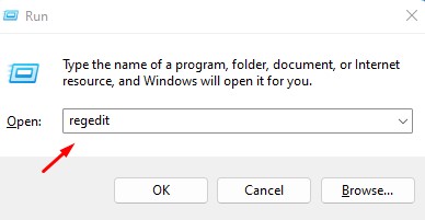 Schritt 6:Zum ÖffnenRegistrierungseditor, Typ "regedit” in das Feld ein und drücken SieEingeben.