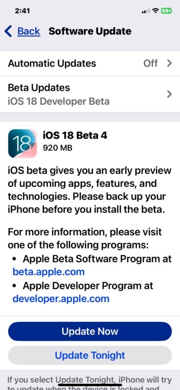 Der Hauptvorteil der Teilnahme am Beta-Track für iOS 18-Entwickler besteht darin, dass Sie Beta-Updates normalerweise kurz vor der Veröffentlichung desselben Builds als öffentliche Beta erhalten, abhängig von den Beta-Versionen und dem internen Zeitplan von Apple. Vielleicht haben Sie die öffentliche Betaversion installiert, möchten aber nun über den Entwickler-Betakanal schneller auf neue Beta-Updates zugreifen. In diesem Fall würde ein Wechsel zur Entwickler-Beta dies ermöglichen.