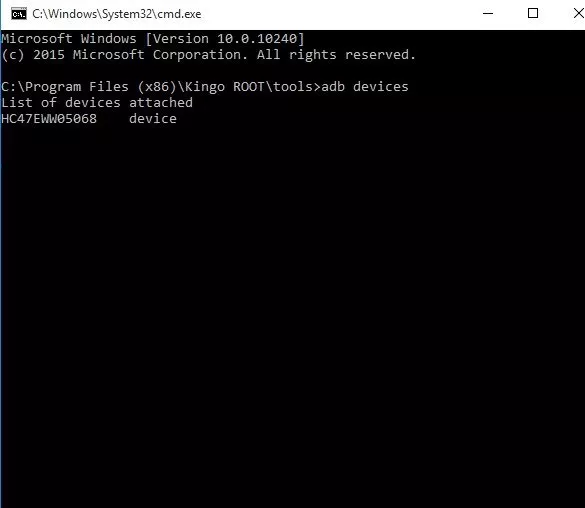 ADB-Befehl im Fenster.