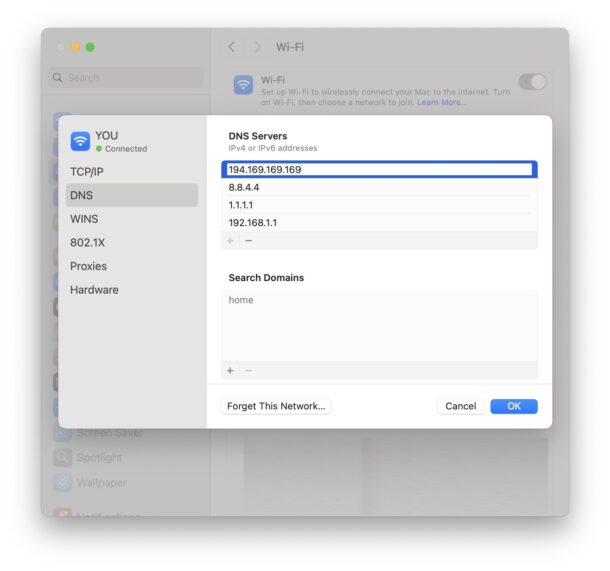 Denken Sie daran, dass das Festlegen von benutzerdefiniertem DNS auf einem Mac iCloud Private Relay deaktiviert.