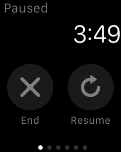 Sie können ein Training jederzeit unterbrechen, indem Sie fest auf den Bildschirm drücken. Tun Sie dies, wenn Sie während des Trainings aus irgendeinem Grund aufhören und Dinge wie Ihre Herzfrequenz nicht aufgezeichnet werden sollen. Tippen Sie auf „Fortsetzen“, um fortzufahren.