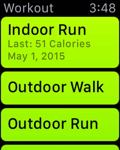 - Öffnen Sie die Workout-App und tippen Sie dann auf die Art des Trainings, das Sie durchführen möchten, einschließlich Laufen, Radfahren, Rudern und mehr. Wenn Sie Trainingseinheiten auswählen, verfolgt die Apple Watch Ihre Präferenzen und platziert die am häufigsten genutzten Trainingseinheiten ganz oben.