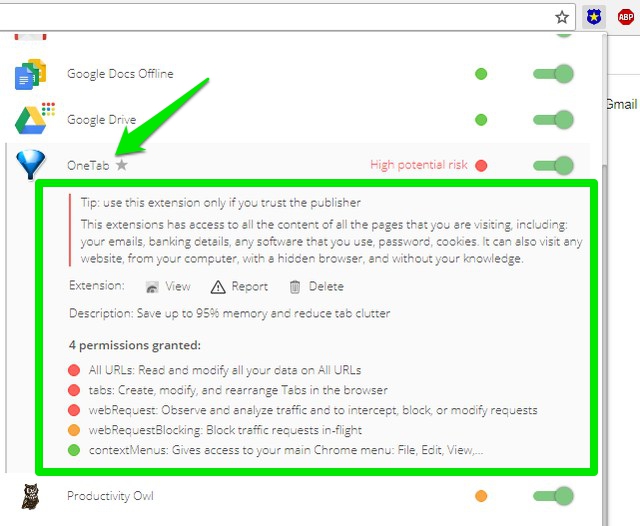 Es ist nicht ganz einfach zu verfolgen, welche Berechtigungserweiterungen verlangen und wie sie diese nutzen. Darüber hinaus besteht auch die Möglichkeit, eine Nachahmung einer vertrauenswürdigen Erweiterung zu installieren oder, schlimmer noch, eine legitime Erweiterung zu betrügenHallo VPN.