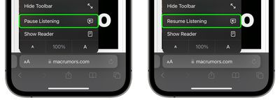 Wenn Sie Siri pausieren, wird es durch ein ersetztHören Sie weiter zuDie Option bleibt bestehen, auch wenn Sie die Seite verlassen und später zu ihr zurückkehren.