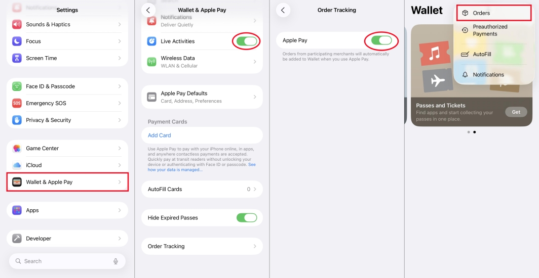 Schritt 2.WählenAuftragsverfolgungund einschaltenApple Pay.