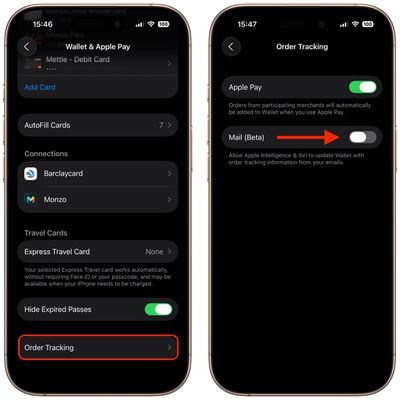 In iOS 26 macht Apple Intelligence die Bestellverfolgungsfunktion der Wallet-App wirklich nützlich, indem es Ihre E-Mails nach Versanddetails durchsucht.