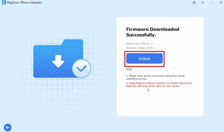 Schritt 6: Nachdem die Firmware heruntergeladen und überprüft wurde, klicken Sie auf „Entsperren" Taste.