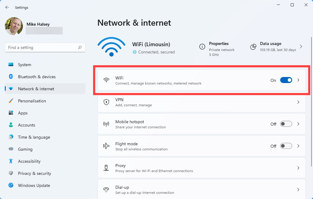 Darüber hinaus können Sie das Netzwerk auf eine getaktete Verbindung einstellen. Das bedeutet, dass das Netzwerk Mobilfunkdaten nutzt, deren Nutzung oft teuer sein kann. Wenn Sie ein Netzwerk als „gemessen“ festlegen, werden Internet-Hintergrundaufgaben wie das Herunterladen von Windows- und App-Updates deaktiviert, die oft große Datenmengen verbrauchen.