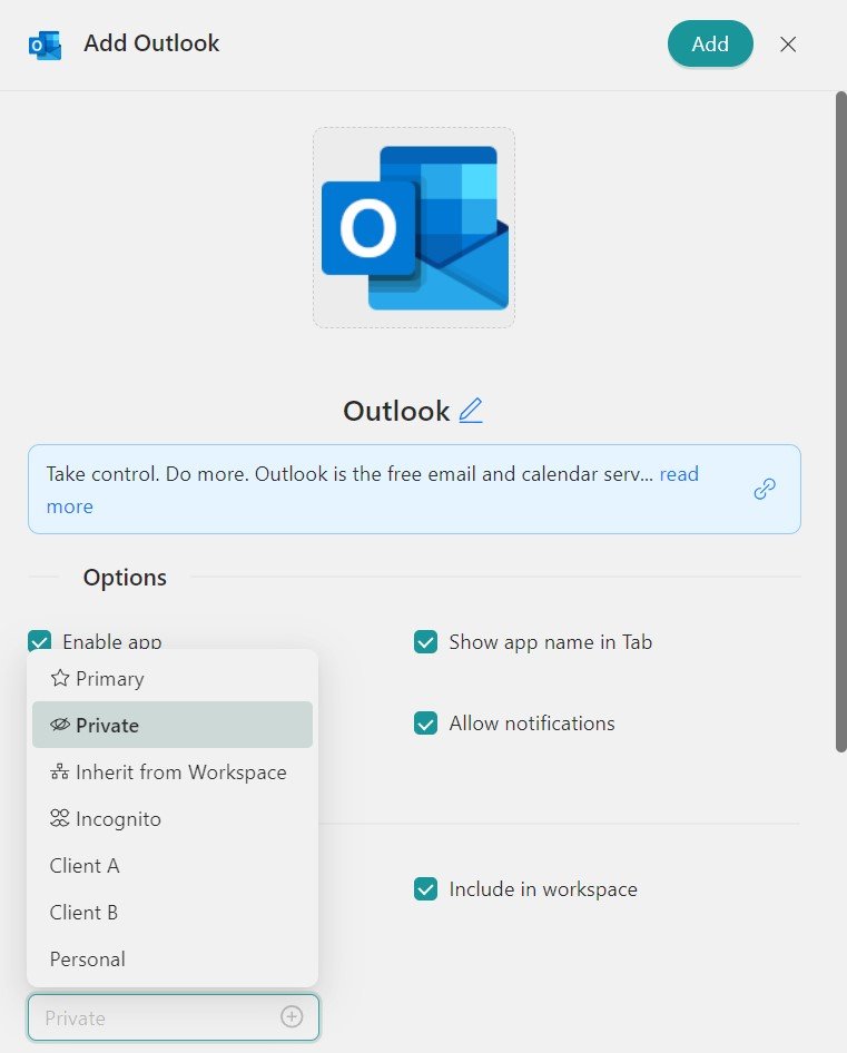 - Klicken Sie auf„+Hinzufügen“ und fertig!Die App wurde zum Arbeitsbereich Ihrer Rambox hinzugefügt!