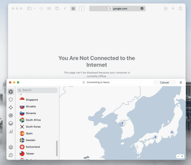 Das gab mir die Gewissheit, dass meine Verbindung sofort getrennt wird, wenn NordVPN Probleme mit dem WLAN-Signal hat oder die Verbindung zum Server trennt, wodurch meine Identität vor allen „heimtückischen Männern“ geschützt ist.