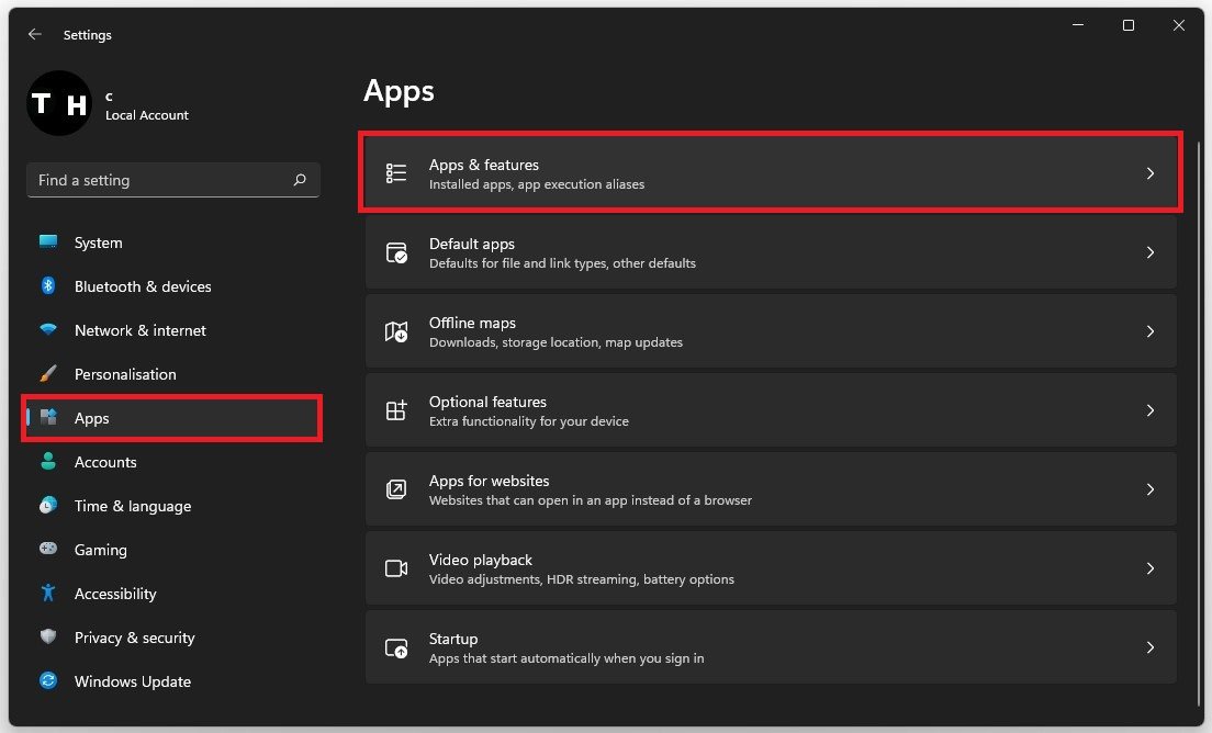 Schließen Sie IhrTask-Managerund öffne deine HeimatEinstellungenAnwendung. UnterApps, klicken Sie aufApps und Funktionen.