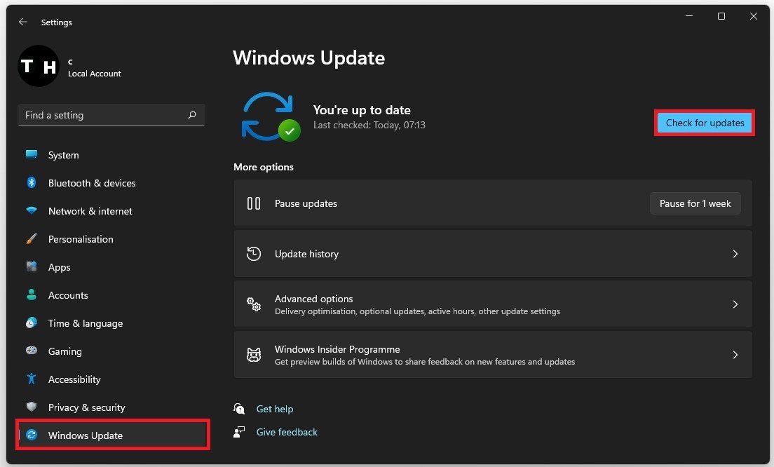 Navigieren Sie zuWindows-UpdateTab. Klicken Sie aufSuchen Sie nach Updates,HerunterladenoderJetzt installieren. Wenn Ihnen ein Update zur Verfügung steht, laden Sie es herunter und starten Sie Ihren PC neu, wenn der Download abgeschlossen ist.