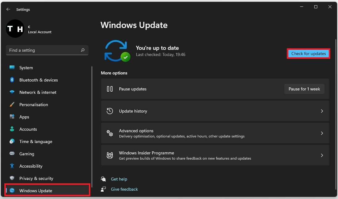 Behalten Sie IhreEinstellungenFenster öffnen und suchenAktualisierenum zu dir zu gelangenWindows-UpdateEinstellungen. Stellen Sie sicher, dass Sie es tunSuchen Sie nach aktuellen Updates, und wenn Ihnen ein Update zur Verfügung steht, laden Sie es herunter, bevor Sie Ihren PC neu starten, der das Update für Sie installiert.