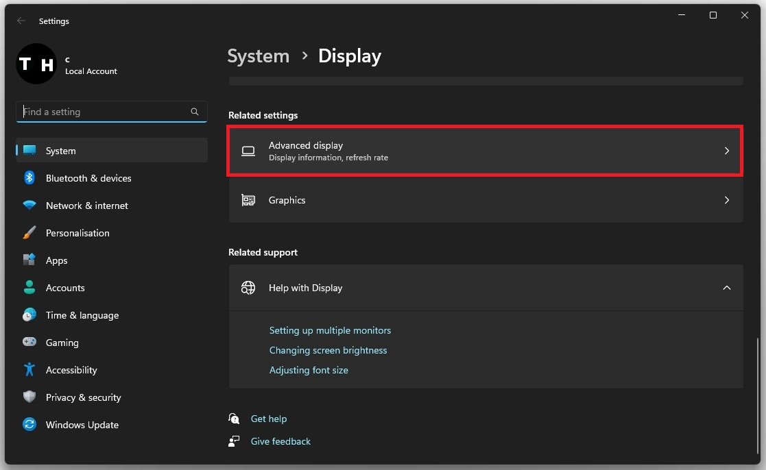 Wählen Sie die richtige Anzeige und unten ausVerwandte Einstellungen, klicken Sie aufErweiterte Anzeige.