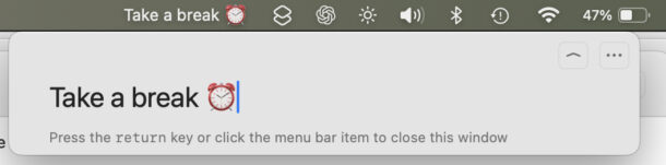 Während viele Menschen To-Do-Listen als nützlich empfinden, können sie auch überwältigend sein, wenn Sie zwanzig Elemente auf der Liste haben. Für manche Menschen ist es möglicherweise einfacher, sich nur auf ein einziges Ziel, eine einzige Aufgabe oder eine einzige Erinnerung zu konzentrieren, und zwar ohne weitere Ablenkungen. Hier kommt One Thing ins Spiel, eine kostenlose, einfache Mac-App, mit der Sie beliebigen Text (und Emoji) in der Mac-Menüleiste platzieren können, egal ob es sich um eine Aufgabe, ein Ziel, eine Erinnerung, eine Bestätigung oder sogar eine kurze nette Nachricht an einen geliebten Menschen auf seinem Mac handelt.