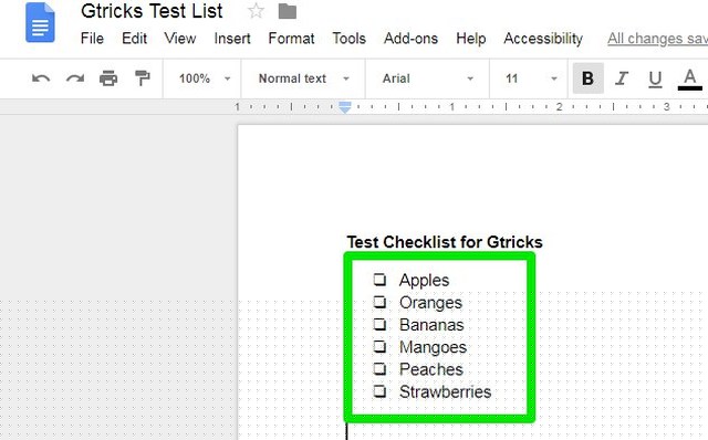 Wenn Sie ein Kontrollkästchen in Google Docs einfügen möchten, kenne ich eine Problemumgehung, die hilfreich sein kann. Nachfolgend finden Sie eine Schritt-für-Schritt-Anleitung zum Erstellen einer interaktiven Checkliste in Google Docs.