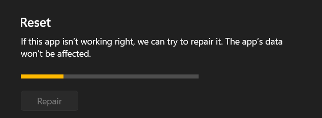 Windows 11 verfügt über ein integriertes App-Reparaturtool, mit dem Sie häufige Probleme im Zusammenhang mit der Funktionalität beheben können. Starten Sie einfach den Reparaturvorgang und prüfen Sie, ob die Fehlermeldung „Aufnahme gestoppt“ nach Abschluss des Vorgangs erneut angezeigt wird!