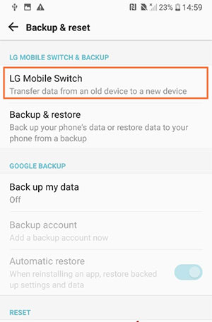 1. Überprüfen Sie in den Einstellungen, ob Sie LG Mobile Switch haben