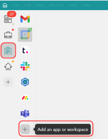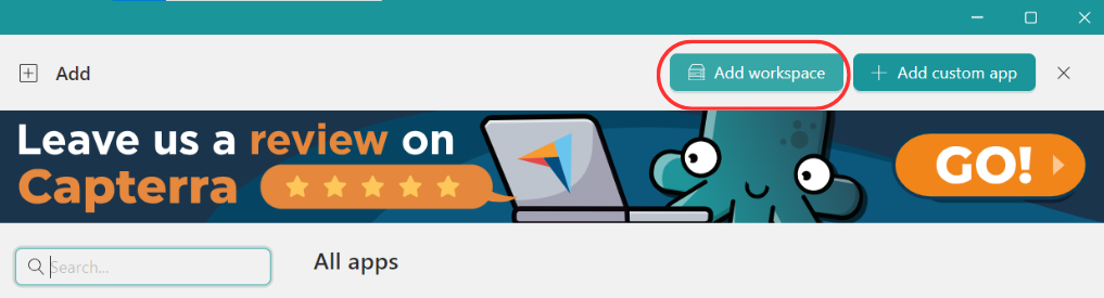 - Klicken Sie auf den Arbeitsbereich, in dem Sie eine App hinzufügen möchten, und wählen Sie sie aus„Fügen Sie eine App oder einen Arbeitsbereich hinzu.“