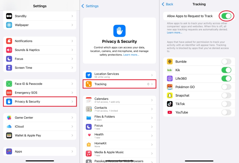 Schritt 2.AusschaltenErlauben Sie Apps, Anfragen anzufordernzu verfolgen.