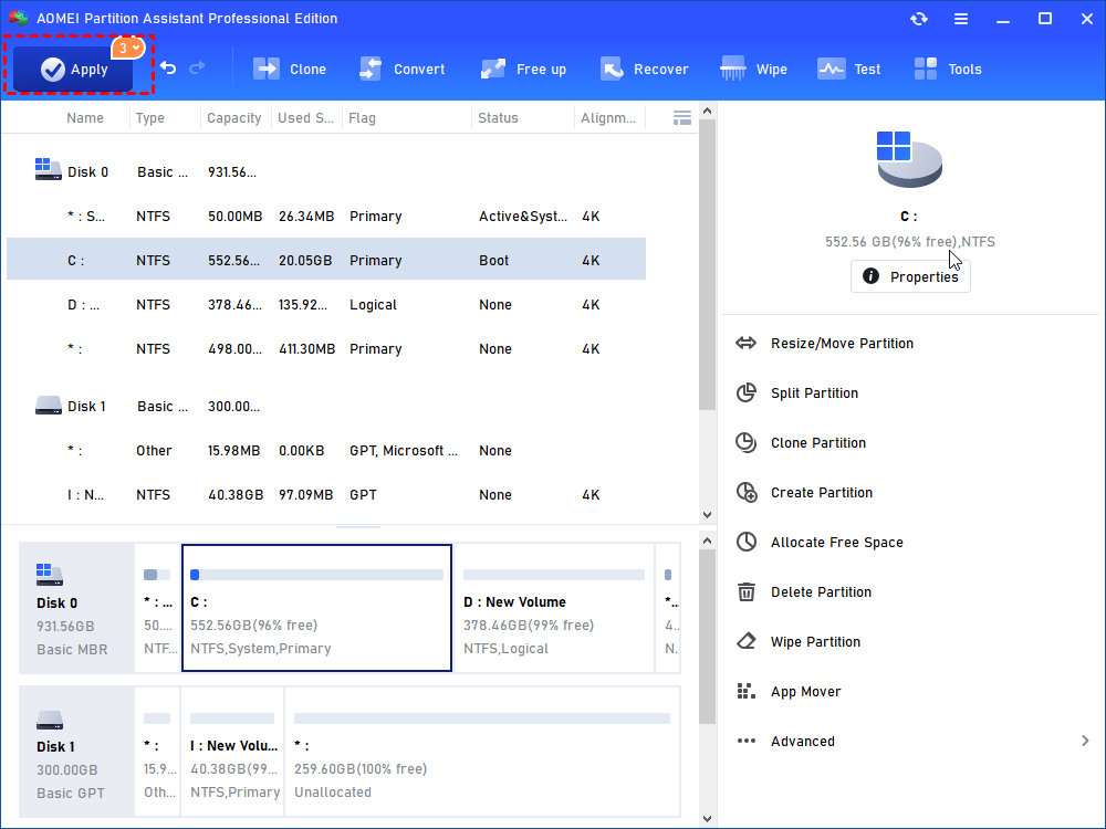 Obwohl einige Probleme auf andere Weise gelöst werden können, z. B. durch CMD und Datenträgerverwaltung, stellen wir fest, dass sie immer noch weniger effektiv und sicher sind als IEMOA Partition Assistant. Es verfügt außerdem über weitere erweiterte und praktische Funktionen wie das Verschieben installierter Anwendungen auf ein anderes Laufwerk, die Migration des Betriebssystems auf SSD, das Löschen großer Dateien usw. Benutzer von Windows Server 2025/2022/2019/2016/2012(R2)/2008(R2)/2003 wenden sich bitte an die Server Edition.